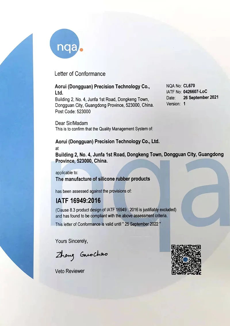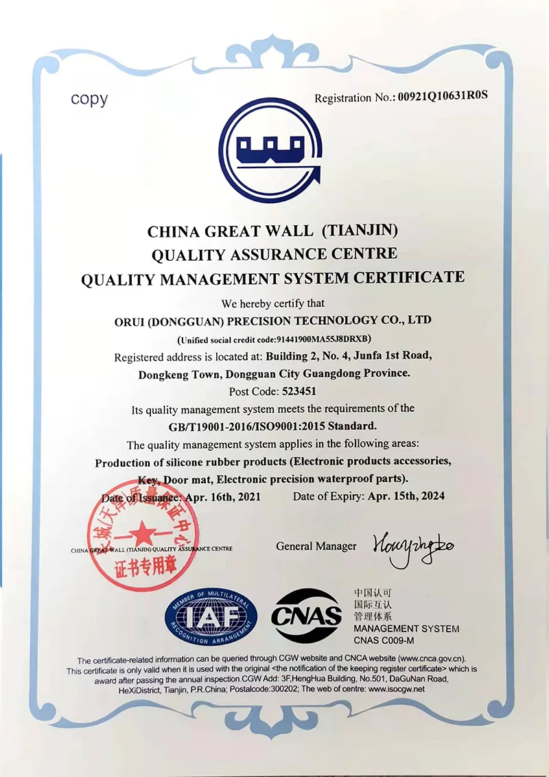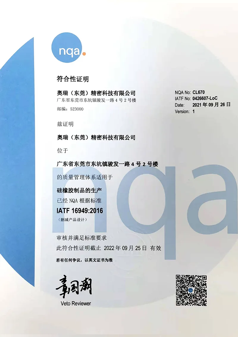 Tehdas sijaitsee Dongguanissa, valmistusteollisuuden pääkaupungissa, ja sen tuotantoala on 10 000 neliömetriä, noin 300 hengen tiimi, jossa on 32 vulkanointivalukonetta, 14 nesteruiskuvalukonetta, tehtaalla on suunnitteluosasto, muottiosasto, kumin sekoitusosasto, muovausosasto, trimmausosasto, pakkausosasto, muun muassa Donggu-yritys, korkean teknologian yritys, jne. parantamalla esittelyn yrityksiä, ja läpäissyt ISO9001, ISO14001, IATF16949, ISO13485 laatujärjestelmän sertifioinnin, asiakkaat kaikkialla maailmassa yli 200 maassa. Olemme luoneet liikesuhteen monien tunnettujen yritysten ja tuotemerkkien kanssa, kuten BYD, Tesla, Huawei, Microsoft, Apple, Sharp jne. Tuotemateriaalit ovat ROHS/REACH/FDA/LFGB/UL-standardien mukaisia.
